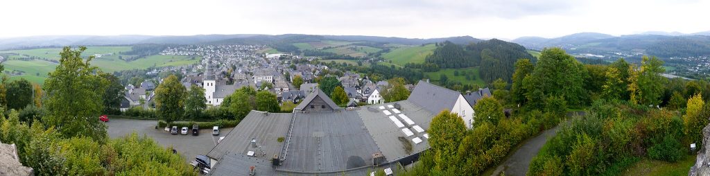 Am Fuße der Burg entstand eine kleine befestigte Bergstadt, die bald städteähnliche Privilegien wie Marktrecht, Freiheitsrechte und ein eigenes Gericht erhielt. Die Grafen von Arnsberg ließen den Ort mit einer Stadtmauer und Torbefestigungen versehen. Neben den Häusern von Handwerkern und Ackerbürgern wurde auch eine frühere Pfarrkirche errichtet.