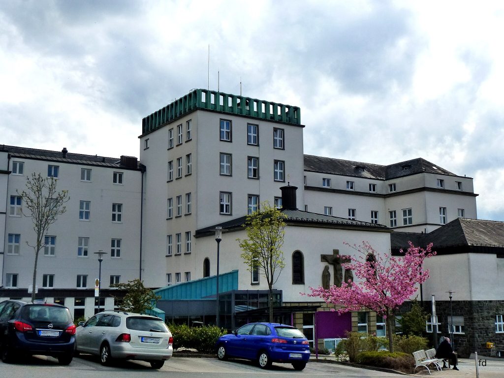 Man muss sich schon ein wenig in die Zeit versetzen, um die Gründung der ersten Krankenanstalt in Meschede richtig einschätzen zu können: In der Mitte des 19. Jahrhunderts lag die Einwohnerzahl in Meschede bei ca. 2000. Der damalige Pfarrer und Landdechant Ernestus Böschen wünschte sich zu seinem goldenen Priesterjubiläum „eine Pflegeanstalt für arme Kranke“. Er selbst spendete 160 Taler. Die Ernestinische Stiftung war gegründet. Zahlreiche weitere Zuwendungen wurden benötigt, und es dauerte noch weitere drei Jahre, bis das Projekt wirklich umgesetzt werden konnte. Neben den Mescheder Bürgern war es vor allem der ortsansässige Graf Clemens August von Westphalen, der die Ernestinische Krankenanstalt finanziell großzügig unterstützte. Das alte Krankenhaus lag zwischen Mühlengasse und Gutenbergstraße. Dort trafen am 12.08.1854 zwei Clemensschwestern, Salesia und Ambrosia, aus dem Orden der „Barmherzigen Schwestern“, Münster, in Meschede ein. Zu ihrer Freude fanden sie bei der Einführung in die Anstalt bereits einen Beinbruch-Kranken vor. In den folgenden fünf Monaten wurden insgesamt 23 Kranke behandelt, betreut und verpflegt.