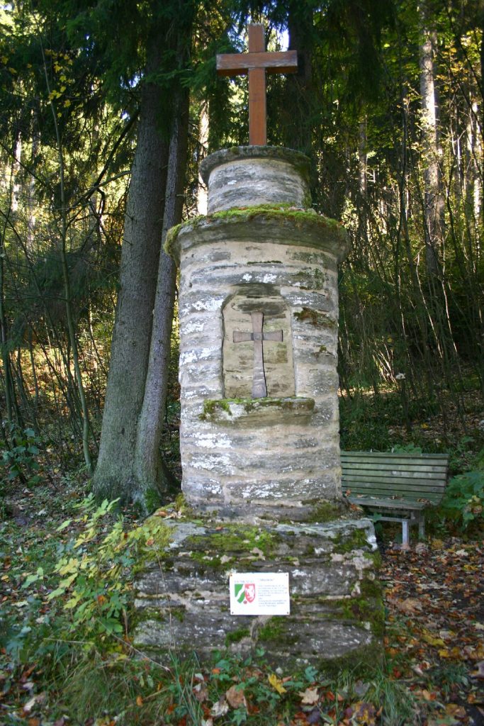 Das ursprüngliche Holzkreuz wurde im Jahr 1862 durch eine steinerne Gedenksäule ersetzt. Diese schrieb Bahnschulte dem Baumeister Michael Spanner zu.