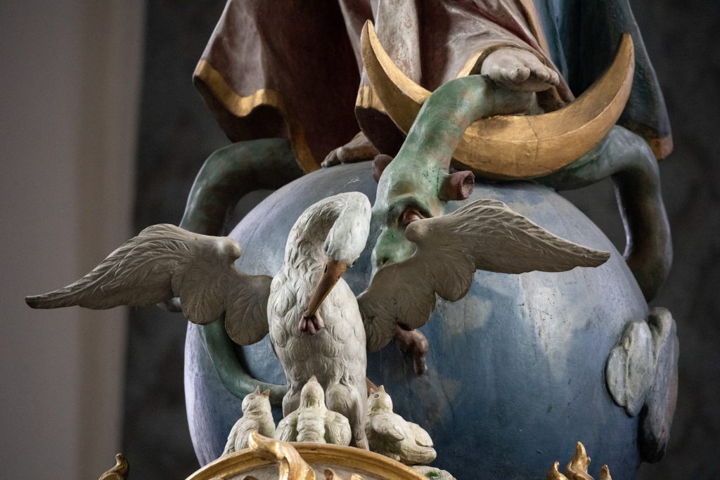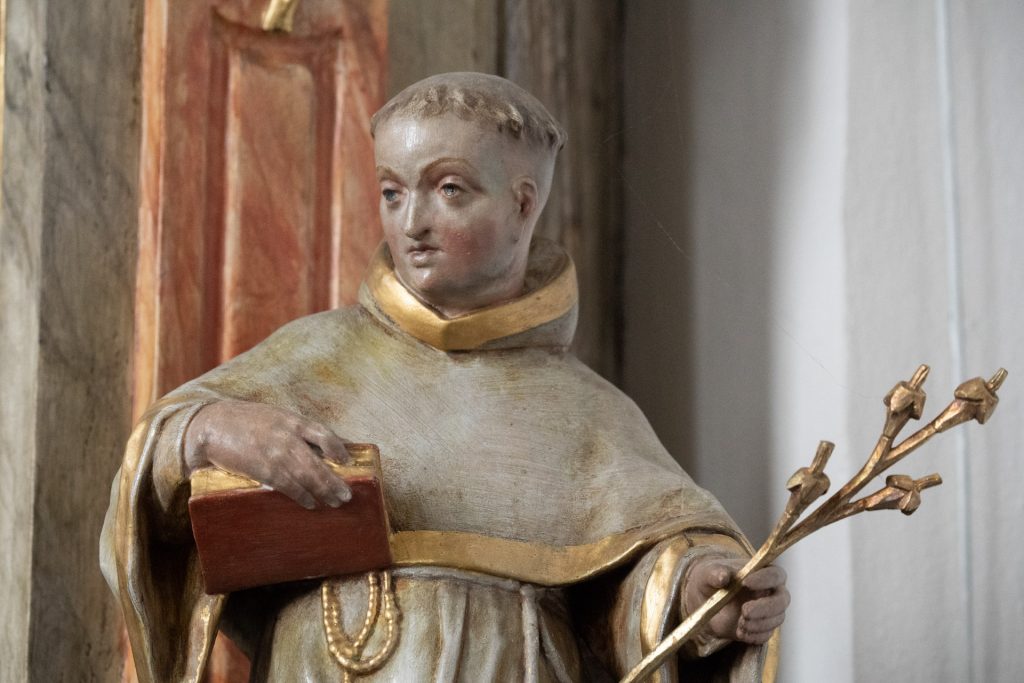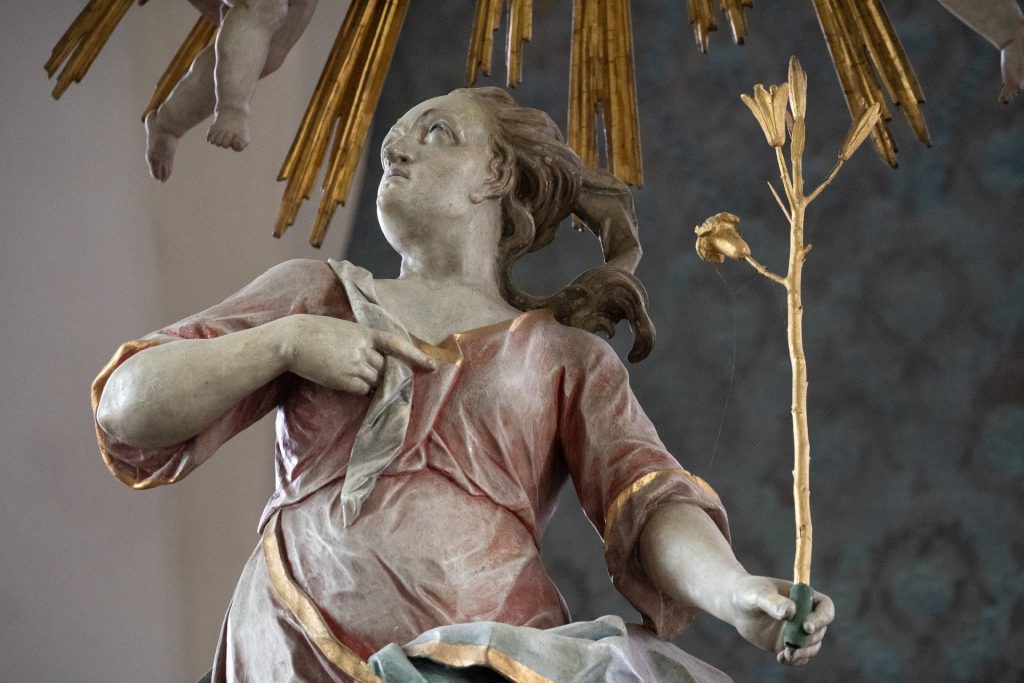 Der Hochaltar stammt von 1767, wurde aber 1949 durch einen Brand beschädigt und dann überarbeitet.