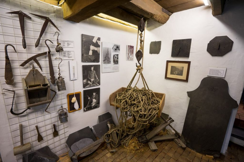 In der Küche stehen Gerätschaften, von denen ich zuvor noch nie gehört hatte: Allein in der Milchkammer gibt es Satten – das sind Tonschalen –, einen Rahmtopf, Stoß- und Drehkirne zum Buttern und das Käsefättken, um trockenen Handkäse herzustellen.