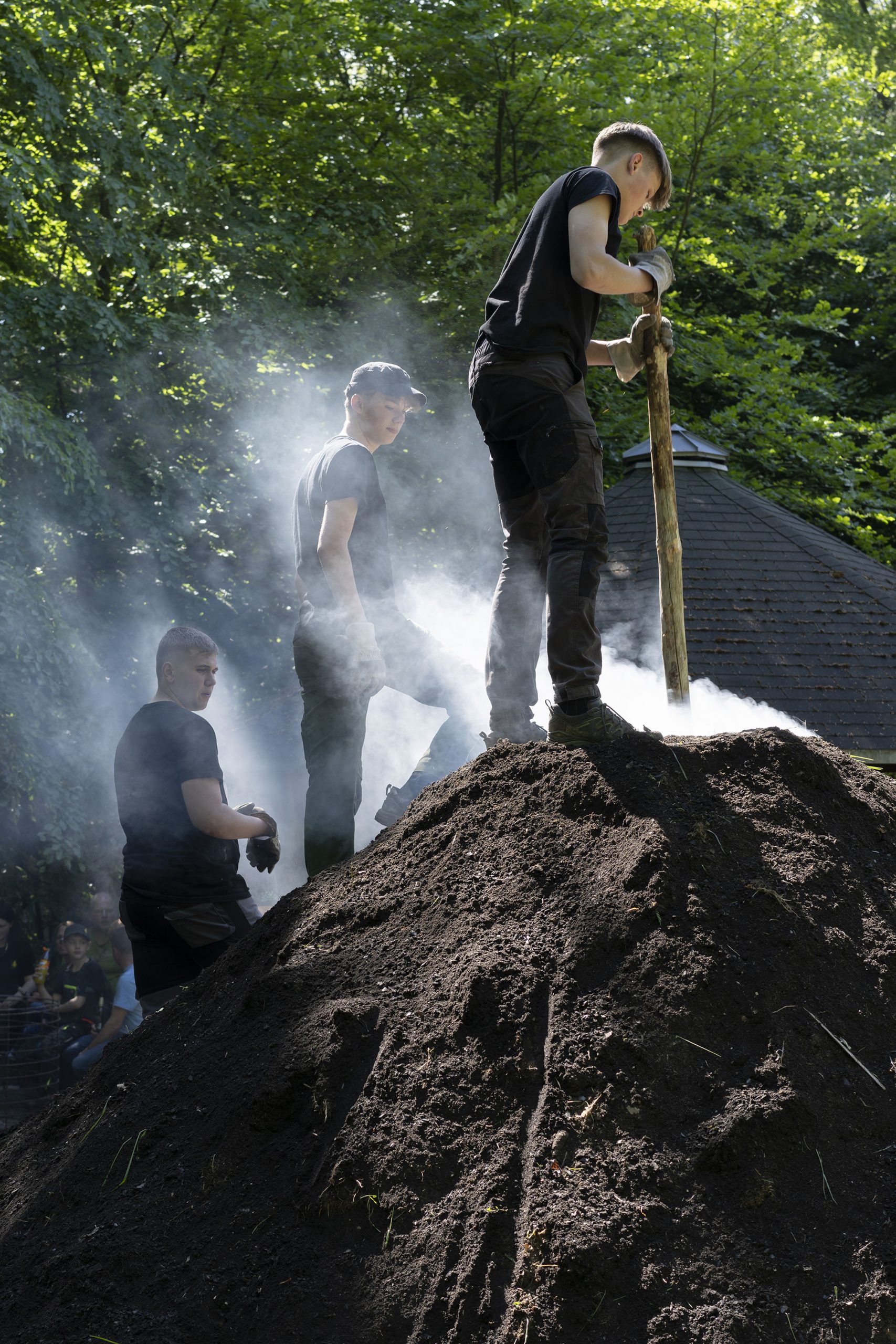 „Weil der Meiler rund um die Uhr bewacht werden muss, merkt man spätestens nach der dritten Nachtschicht am Vogelkonzert in der Morgendämmerung, wie gut die Vogeluhr funktioniert”, berichtet Bräutigam. „Bis auf fünf Minuten genau kann man die Zeit ohne technische Hilfsmittel bestimmen. Auch das Klima im Wald ist wesentlich konstanter als im Ort. Das Schönste ist jedoch die Ruhe, die der Wald ausstrahlt. In der heutigen hektischen Zeit ist es Erholung pur – trotz harter körperlicher Arbeit.”