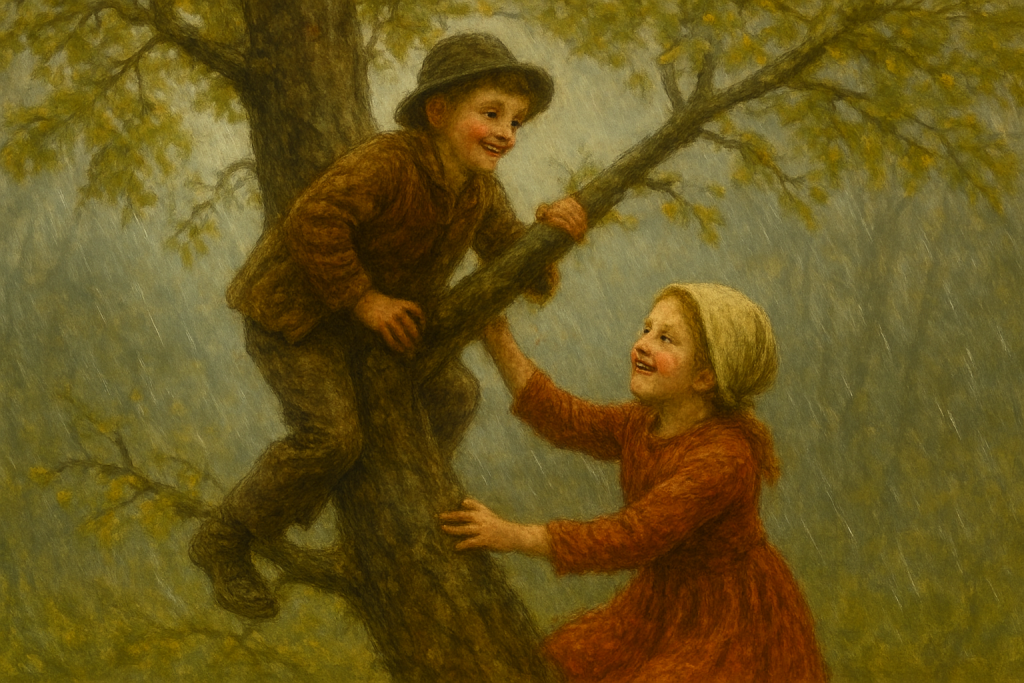 Auch das Baumklettern gehörte dazu – Mutproben, die oft in stolzen Geschichten endeten: Wer bis in die Krone des alten Hofapfelbaums kam, hatte sich Respekt verdient.