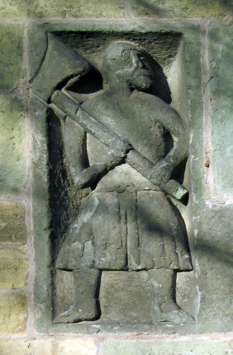 Der Neheimer Heimatforscher Bernhard Bahnschulte hat uns eine Erklärung für die Skulpturen geliefert, wie sie an der Pfarrkirche in Ense-Bremen zu sehen sind. Dargestellt sind zwei der höchsten Gottheiten der Sachsen. Links oben Donar, mit dem „Donnerkeil“, der bis heute als Glücksbringer und Abwehrzeichen gegen das Böse gilt. Links unten ist kein keulenschwingender Mann, sondern Fria, die Lieblingsgöttin der Sachsen zu sehen. Sie hält einen Spinnrocken in der Hand und lässt den gesponnenen Faden in den Schoß fallen.
