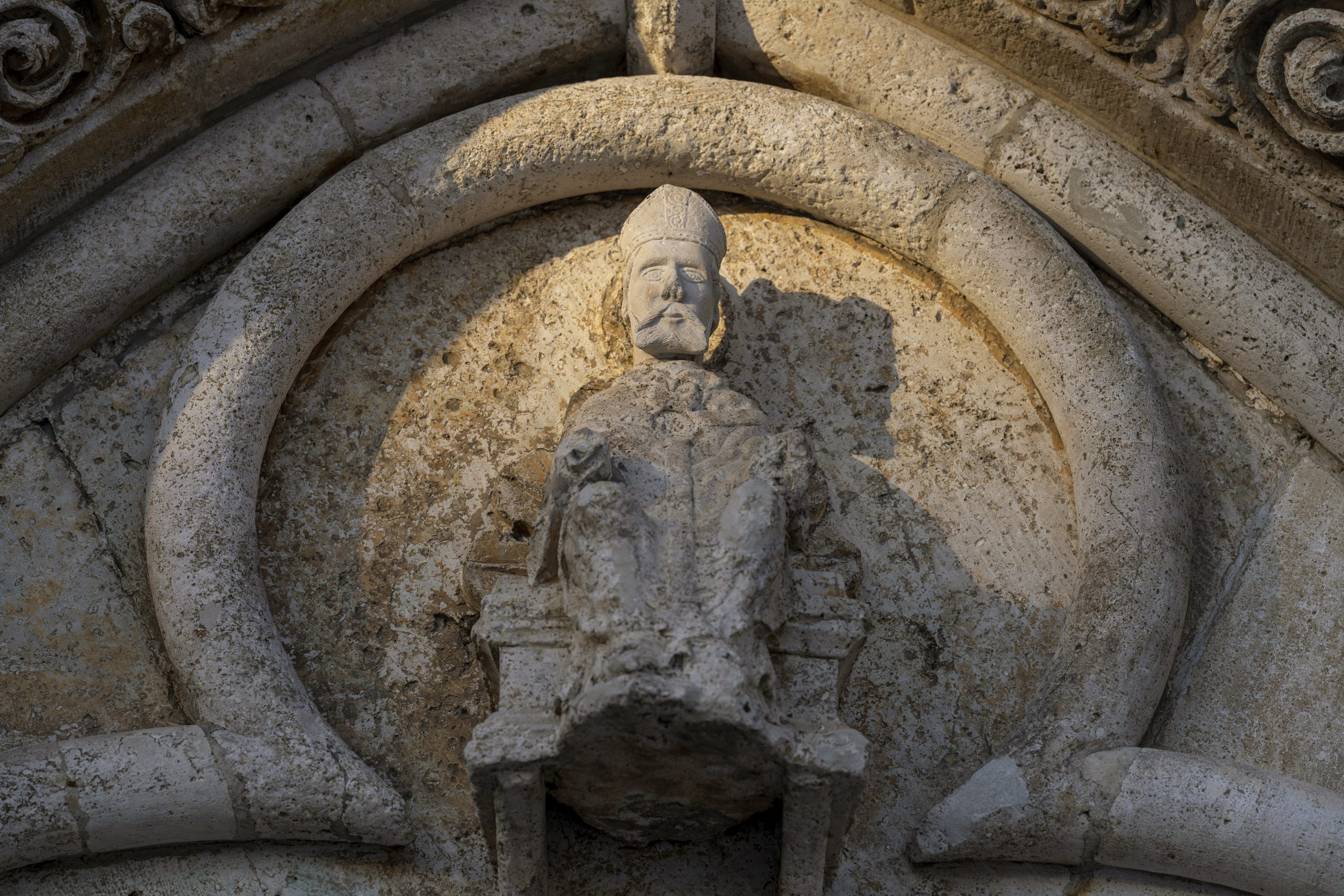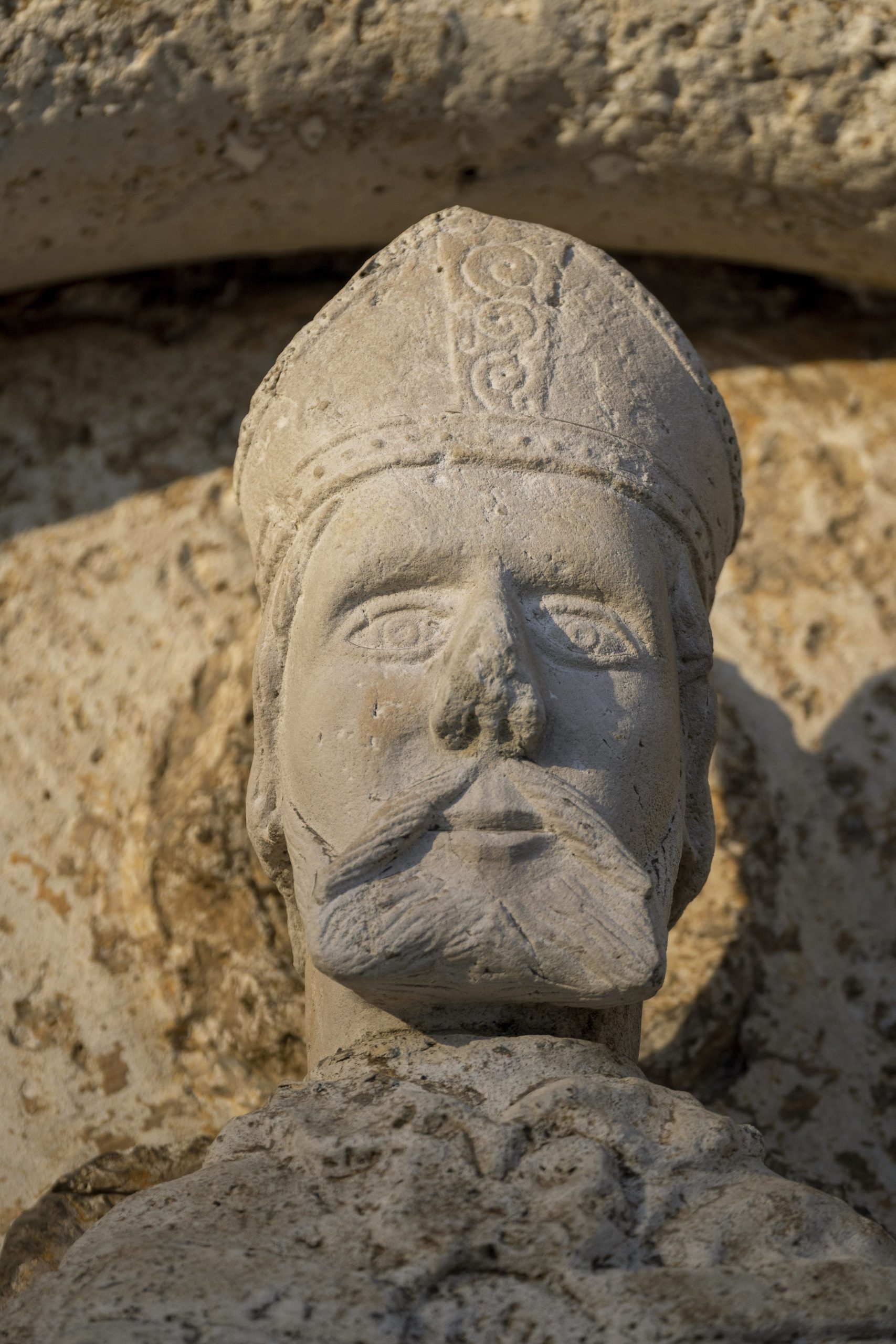 Die Christianisierung Westfalens begann mit Karl dem Großen im 8. Jahrhundert. Das wichtige germanische Heiligtum, die Irminsul, die bei Marsberg gestanden haben soll, ließ Karl zerstören – und entfachte mit diesem Religionskrieg, wie wir es heute nennen würden, die 30 Jahre andauernden Sachsenkriege. Sein überlebensgroßer, aus Stein gehauener Kopf ist noch heute an der äußeren Südseite der Obermarsberger Nikolaikirche zu sehen. Kein Wunder, dass Ulrike Frey vom Erzbistum Paderborn, Abteilung Kunst, uns auch gleich auf diese Kirche verwies.