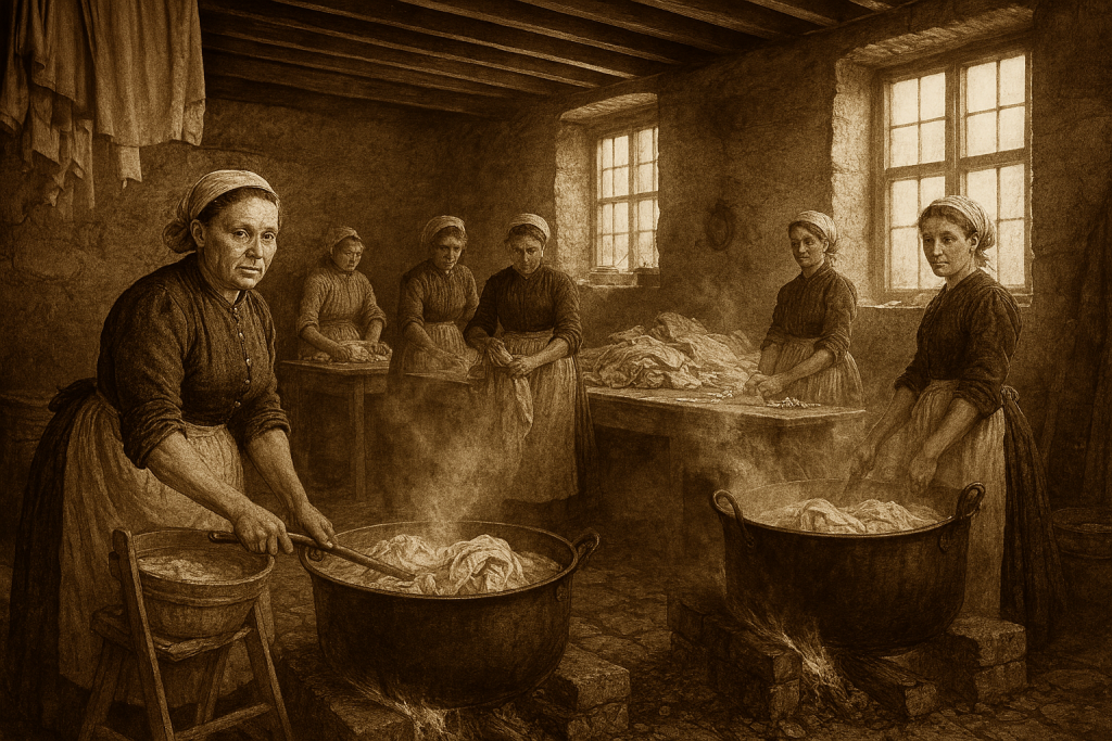 Was heute die Waschmaschine automatisch erledigt, wurde damals mühsam erarbeitet: Die Wäsche musste vorab eingeweicht, mit Buchenasche bestreut und in großen Kesseln erhitzt werden. Am Bach kamen Waschbretter und Holzstamper zum Einsatz, bevor die Wäsche mehrfach gespült und ausgewrungen wurde und später zum Bleichen auf Wiesen ausgebreitet wurde.